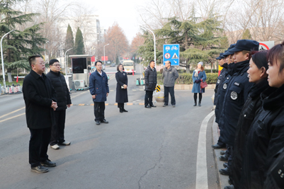 张士强校长一行先后来到主校区东南门、梅花馆、校医院,舜耕校区东门、综合楼、锅炉房等处,亲切慰问节日期间坚守在工作岗位的安全管理、后勤和医疗工作者。