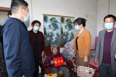 座谈会后,李光红副校长带领工作组成员慰问了小庄村独居老人张文华。张文华老人今年85岁,独身一人,生活十分困难。疫情期间,“四进”工作组协同村委人员,每日到张文华老人家消毒喷杀、测量体温、配送蔬菜粮油等生活用品。这次工作组给张文华老人送来了慰问金、牛奶、米面等慰问品,李光红副校长还与老人拉家常,了解日常生活情况,叮嘱老人保重身体。