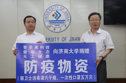 爱心助力,共同战疫,我校的疫情防控工作得到了社会各界的密切关注和爱心支持。6月17日,爱华生态农业发展(山东)有限公司、山东青苹果生物科技有限公司、聊城天工健康科技有限公司向我校捐赠抗疫物资驱力士新型消毒液60箱(共计6000瓶),一次性医用口罩50箱(共计50000只),为我校疫情防控工作提供了大力支持。爱华生态农业发展(山东)有限公司董事长郝利、山东青苹果生物科技有限公司董事长贾小雨、聊城天工健康科技有限公司董事长刘学锦代表企业捐赠。张士强校长、刘宗明副校长,合作发展处、校医院、教育发展基金会相关负责同志出席捐赠仪式。刘宗明副校长主持了仪式。