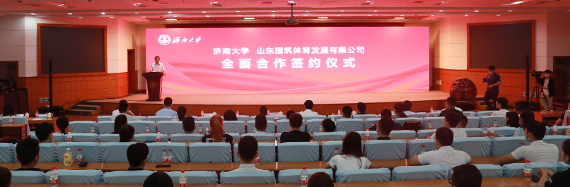 7月21日,sunbet申搏官方网站与山东国筑体育发展有限公司全面合作签约仪式在sunbet申搏官方网站举行。济南市市中区教体局党组成员、市中区体育事业发展中心主任韩明轩,山东国筑体育发展有限公司董事长王志军,山东国筑体育发展有限公司执行总裁都振达,山东国筑体育发展有限公司常务副总裁于海龙,sunbet申搏官方网站校长张士强,sunbet申搏官方网站党委副书记王玉华,学校合作发展处、体育学院相关负责同志参加仪式。仪式由王玉华副书记主持。