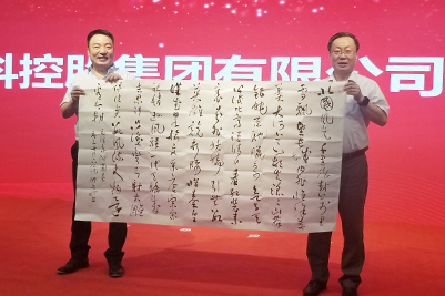 最后,张士强校长代表学校向博科集团赠送我校书法家于剑波书法作品——《沁园春·雪》,表达对博科集团的美好祝福,望双方继续努力,不断拓展合作的深度,合力谱写创新创业共同体新篇章。