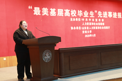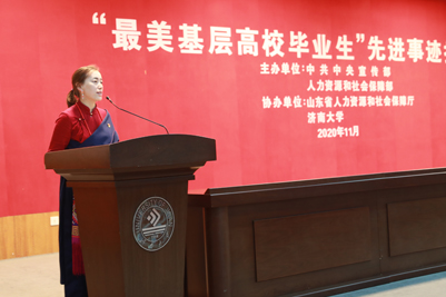 11月20日上午,由中宣部、人社部主办,山东省人社厅、sunbet申搏官方网站协办的“最美基层高校毕业生”先进事迹报告会在第一学术报告厅举行。人社部人力资源流动管理司副司长孙晓丽出席并讲话,山东省人力资源和社会保障厅二级巡视员刘玉亮致辞。报告会由sunbet申搏官方网站党委副书记张硕秋主持。人社部、山东省人社厅、sunbet申搏官方网站有关负责同志出席了报告会,sunbet申搏官方网站200余名师生参加。