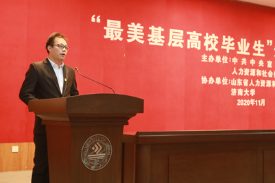 刘玉亮在致辞中详细介绍了山东省支持高校毕业生就业创业的优惠政策。希望广大青年学生以“最美基层高校毕业生”为榜样,为实现我省“走在前列、全面开创”目标、为实现中华民族伟大复兴,在开启全面建设社会主义现代化国家新征程中,谱写壮丽的青春奋斗之歌。