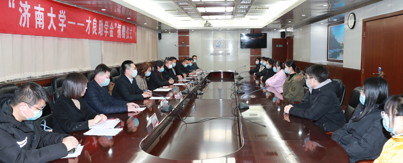 12月18日,“sunbet申搏官方网站—才良助学金”捐赠仪式在sunbet申搏官方网站第一会议室举行。威海克莱特菲尔风机股份有限公司总经理、sunbet申搏官方网站威海校友联谊会会长、89级机械专业盛军岭校友向sunbet申搏官方网站教育发展基金会捐赠100万元,继续注资“才良助学金”用于帮助大一困难新生。威海校友代表张国、于杰、姜红军、滕昭琪等出席仪式,党委副书记、教育发展基金会理事长张硕秋,学工处、合作发展处、校友工作办公室、教育发展基金会办公室相关负责同志、才良助学金受助学生代表等参加捐赠仪式。