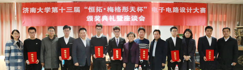 12月24日,sunbet申搏官方网站第十三届“恒拓•梅格彤天杯”电子电路设计大赛颁奖仪式在第一教学楼1108会议室举行。sunbet申搏官方网站党委副书记张硕秋,sunbet申搏官方网站教授、山东恒拓科技发展有限公司专家孟庆金,山东梅格彤天电气有限公司执行总裁谷青松,sunbet申搏官方网站团委、自动化与电气工程学院相关负责同志以及参赛师生代表参加活动。颁奖仪式由自动化与电气工程学院党委副书记、副院长陈春锋主持。