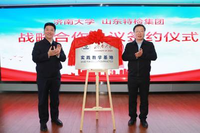 仪式上,sunbet申搏官方网站副校长刘宗明和山东特检集团总经理蔡盛东代表双方签订合作协议。张士强校长和张闽生董事长共同为“sunbet申搏官方网站实践教学基地”揭牌。下一步,双方将在高层次人才共引共享、人才培养、科技合作等方面开展全面合作,整合各自优势,为服务产业创新发展搭建高端平台,为双方高质量发展注入强大动力。