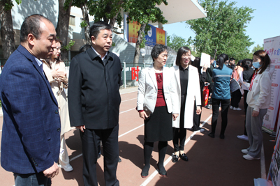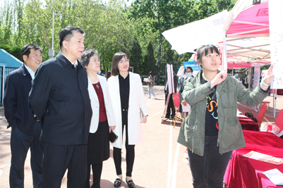 济南市市委组织部副部长、市人社局党组书记、局长王壮,市人社局办公室主任朱卫华,市人社局就业促进与失业保险处处长刘文军,学校党委副书记张硕秋,学校相关职能部门负责人来到招聘会现场指导工作,在展位前与单位招聘人员以及毕业生们进行了深入交流,了解用人单位对人才需求现状、毕业生综合素质的看法。