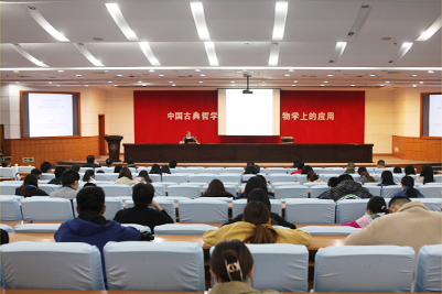 学术报告会由陈月辉副校长主持。徐会连教授重点讲解了中国古典哲学蕴藏的深奥现代科技智慧,以及其与现代生命科学、物理等学科的内在联系,中国哲学思想在不同学科中的渗透、自然科学中的中庸之道和中庸常数的应用等,结合实例鼓励大家大胆创新,勇于提出自己的想法和理论。生物科学与技术学院、水利与环境学院、数学科学学院师生代表200余人参加此次报告会。陈月辉副校长进行总结时表示,目前不同学科之间的交叉融合渗透是未来科学发展的新趋势,强化学科交叉和寻求新的科学范式非常重要。我校将大力推动交叉学科的研究,努力形成新的学科增长点和科学范式,为国家培养新型学科交叉人才。