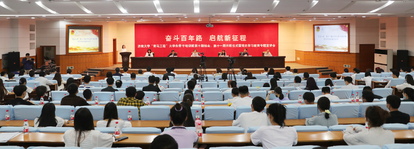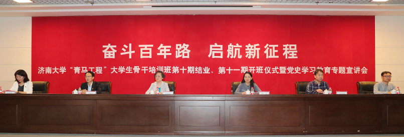 仪式上,校团委书记孙菲菲介绍了学校“青马工程”大学生骨干培训班自2010年启动以来的培训情况,十年来,校级“青马班”培育学生骨干1315名,建立了党性修养、理论学习、实践锻炼、对外交流、能力训练等五大方面的课程体系,逐渐成为学校共青团彰显政治性特征、聚焦思想政治引领主责主业的重要工作品牌,逐步发展成为深化大学生思想政治教育工作的特色项目。