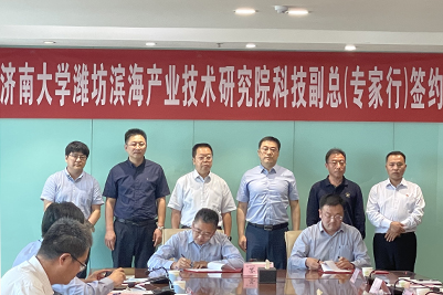 月29日,sunbet申搏官方网站潍坊滨海产业技术研究院揭榜制项目暨科技副总签约活动在潍坊滨海新区举行。sunbet申搏官方网站副校长刘宗明,滨海区党工委委员、管委会副主任孙鹏,学校科技处、合作发展处等相关部门负责人,潍坊滨海区有关职能部门负责人参加活动。签约仪式由滨海区科技商务和投资促进局党支部书记、局长宋作忠主持。