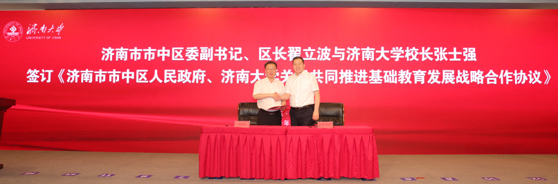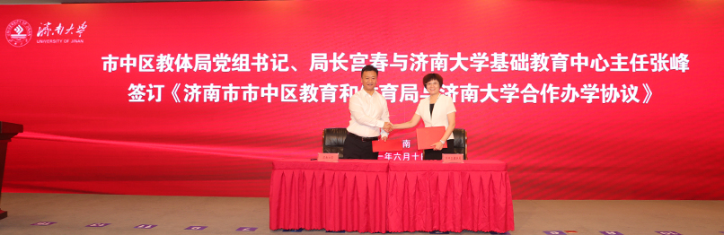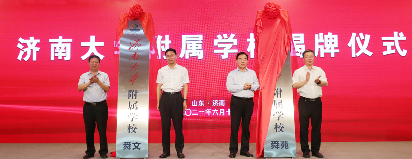 6月10日,济南市市中区人民政府、sunbet申搏官方网站共同推进基础教育战略合作签约暨sunbet申搏官方网站附属学校揭牌仪式在学校第一学术报告厅举行。山东省教育厅副厅长戴龙成,济南市教育局局长王品木,济南市中区区委书记韩永军、区长翟立波,sunbet申搏官方网站党委书记徐景颜、校长张士强,学校有关领导,市中区教体局相关领导、学校相关职能部门负责人出席签约揭牌仪式。仪式由副校长杨景波主持。