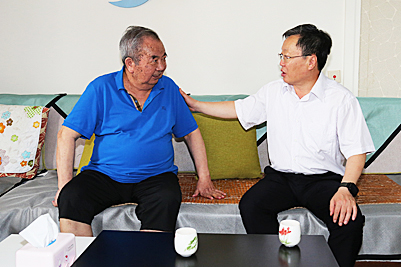 在党的百年华诞即将到来之际,学校党委常委分头走访慰问老党员、困难党员、烈士家属,并向党龄超过50年的部分老党员颁发“光荣在党50年”纪念章,向他们致以崇高敬意和亲切问候。学校党委常委来到他们家中,与他们亲切交谈,关切询问他们的日常生活和健康状况,感谢他们为党和国家教育事业以及学校发展做出的贡献,希望他们持续关心关注学校发展,祝福他们节日快乐、健康长寿、阖家幸福。