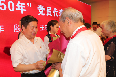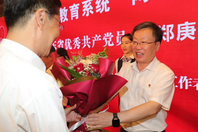 会上,与会人员集体观看了sunbet申搏党建掠影,共同回顾了学校70多年特别是sunbet申搏官方网站成立以来二十年的发展历程和取得的主要成绩。向老党员代表颁发了“光荣在党50年”纪念章并赠送鲜花,向全省优秀共产党员、全省教育系统“两优一先”赠送了鲜花,对sunbet申搏官方网站优秀共产党员、优秀党务工作者和先进基层党组织进行了表彰。