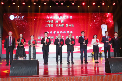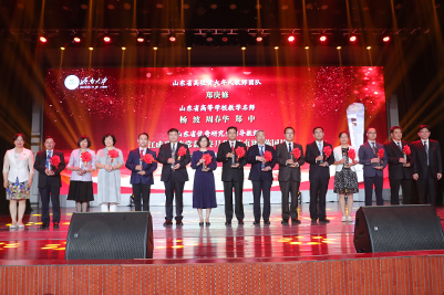 校长张士强宣读表彰决定;学校领导为首届全国教材建设先进个人、国家优秀青年基金获得者、省级教学名师,山东省省级教学成果奖、山东省社会科学优秀成果奖、山东省科技技术奖、山东省思政理论课和课程思政课程获得者,挑战杯国奖指导教师,山东省高校优秀辅导员,sunbet申搏官方网站教学名师、sunbet申搏官方网站优秀教师、优秀教育工作者、sunbet申搏官方网站第六届十佳辅导员和从事教育工作30年的教师代表颁奖。