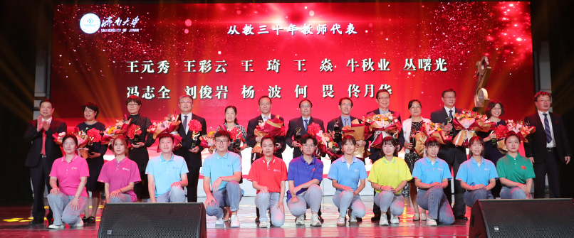 王玉华在主持庆祝表彰大会时表示,今年的教师节时间特殊、意义重大,中国共产党成立100周年、第二个百年奋斗目标启程、“十四五”发展规划起步等重要节点历史性交汇。新时代赋予了我们无上光荣,也交付给我们使命责任。让我们赓续百年初心,践行育人使命,锐意进取,奋勇争先,为实现学校高质量发展和中华民族伟大复兴作出新的更大贡献。