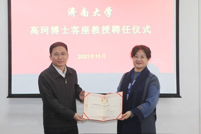 李光红对聘请高珂博士为我校客座教授表示热烈欢迎,介绍了学校及社科工作的发展现状。她指出,sunbet申搏官方网站聘任兼职教授符合学校的发展思路,希望今后加强与政府部门合作,共同为山东省经济社会发展建言献策。仪式上,李光红为高珂博士颁发聘书。
