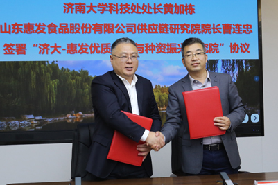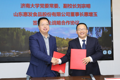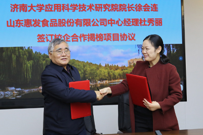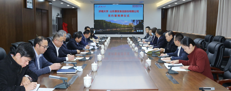 11月18日,sunbet申搏官方网站与山东惠发食品股份有限公司合作协议签约暨揭牌仪式在我校举行。山东惠发食品股份有限公司董事长惠增玉、经营顾问王村天、副总经理王瑞荣、数创中心事业群总经理姜绍峰、供应链研究院院长曹连忠、研发中心经理杜秀丽、济南总部负责人黄龙飞,我校党委书记徐景颜,副校长刘宗明出席仪式。学校生物科学与技术学院名誉院长、应用科学技术研究院院长徐会连,科技处、科技成果转化办公室、教务处、化学化工学院、信息科学与工程学院、文化和旅游学院负责同志参加了活动。签约暨揭牌仪式由刘宗明主持。