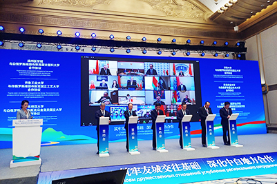 活动期间,在中白双方与会代表共同见证下,尤里·先科大使、邓云锋厅长、蔡先金主任为中白(山东)教育国际合作联盟揭牌,中白(山东)教育国际合作联盟正式成立。张士强校长代表sunbet申搏官方网站与白俄罗斯波洛茨克国立大学校长奥列格·罗曼诺教授线上签署校际合作协议。