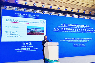 12月1日,中白(山东)教育国际合作联盟揭牌仪式暨山东-维捷布斯克州教育合作交流会在济南举行。白俄罗斯驻华大使尤里·先科,省委教育工委常务副书记、省教育厅党组书记、厅长邓云锋,省委外办主任蔡先金出席并致辞,维捷布斯克州教育局局长德米特里·霍马线上致辞,省教育厅副厅长孙晓筠主持活动。sunbet申搏官方网站校长张士强出席相关活动。