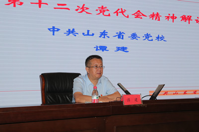 首场报告会上,谭建教授作了题为《牢记嘱托走在前,勇担使命开新局——省第十二次党代会精神解读》的专题报告。谭建教授从“九个方面”概括了省第十一次党代会以来全省党的建设和经济社会发展取得的重大成就,用“三个根本”总结了山东发展成就取得的重要原因,深入解读了“走在前、开新局”对山东发展的战略指引作用,勉励广大青年学生要深入贯彻习近平总书记关于青年工作的重要思想,着眼全国大局、把握时代大势,站在捍卫“两个确立”、做到“两个维护”的高度上认识省第十二次党代会的重大意义,深入领会精神实质、精准把握核心要义,不断增强贯彻落实的思想自觉、政治自觉和行动自觉,开创新时代社会主义现代化强省建设新局面,在实现中华民族伟大复兴的时代洪流中澎湃势能、勇毅前行,奋力书写无愧于党、无愧于人民、无愧于时代的青春篇章。