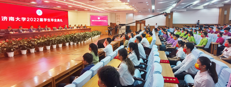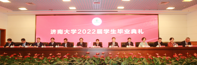 典礼在奏唱国歌中开始,副校长陈月辉宣读了2022届毕业生学位授予决定;副校长刘宗明宣读了2022届优秀毕业生表彰决定;学校领导和嘉宾为2022届优秀毕业生代表颁发荣誉证书;党委书记徐景颜为优秀校友代表曹晓岩颁发纪念奖杯;毕业生代表、物理科学与技术学院光电1802班学生刘斌发言;教师代表、全国黄大年式教师团队带头人、化学化工学院郑庚修教授发言;校友代表、1986届工民建专业校友,济南建工集团党委书记、董事长曹晓岩发言;校长张士强讲话。