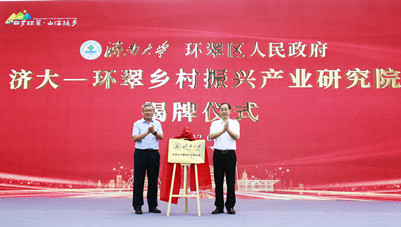 张勇、张宏璞共同为“sunbet申搏官方网站-环翠乡村振兴产业研究院”揭牌,sunbet申搏官方网站、环翠区人民政府、山东土地集团 (环翠) 有限公司三方共同签署《sunbet申搏官方网站-环翠乡村振兴产业研究院框架协议书》。