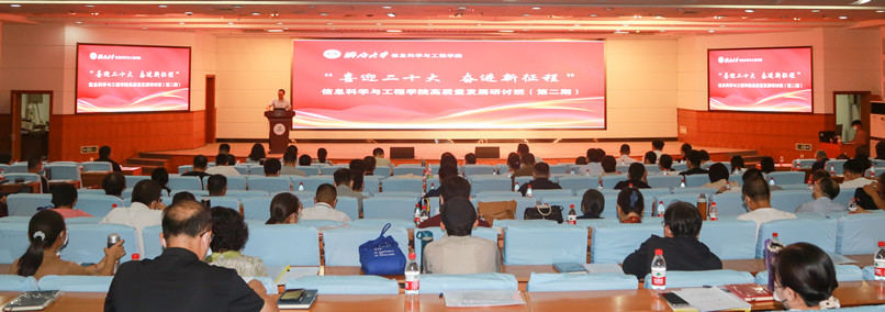 8月27日至30日,信息科学与工程学院举办“喜迎二十大 奋进新征程”学院高质量发展研讨班(第二期),副校长陈月辉出席开班仪式并讲话。研讨班共邀请九位知名专家分别作专题报告,sunbet申搏官方网站党委常委、副校长王霞,副校长黄加栋应邀参加活动,研究生院相关负责同志、学院党政领导班子成员、全体教师参加此次研讨班,研讨班通过线上线下相结合的方式进行。