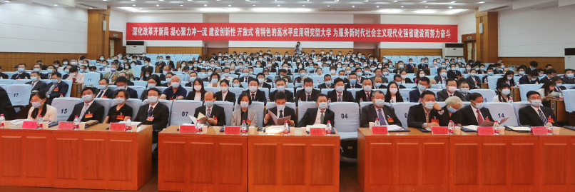 本次大会是在全国上下喜迎党的二十大、向着第二个百年奋斗目标昂首迈进,全省上下锚定“走在前、开新局”砥砺前行,全校上下聚焦“冲一流”奋楫争先的关键时期召开的一次十分重要的会议。大会的主题是:坚持以习近平新时代中国特色社会主义思想为指导,深化改革开新局,凝心聚力冲一流,建设创新性、开放式、有特色的高水平应用研究型大学,为服务新时代社会主义现代化强省建设而努力奋斗。