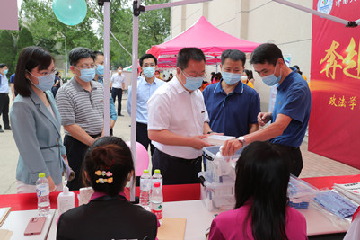 校长刘宗明,党委副书记杨景波,党委常委、副校长李强来到主校区和舜耕校区,看望入校新生并慰问学生工作人员及志愿者。学校领导在迎新报到点认真听取了各部门、各学院迎新工作情况,参与了各学院组织的特色迎新活动,与广大工作人员、志愿者以及2022级新同学亲切交谈、合影留念,为他们送上诚挚问候。为确保家庭经济困难新生顺利入学,学校资助管理中心在迎新系统中开通“绿色通道”线上办理,家庭经济困难新生在报到前可根据实际情况进行家庭经济困难学生申请认定和资助政策的了解;在报到现场开设“绿色通道”线下服务,为家庭经济困难新生进行“一对一”资助政策解读,提供生源地国家助学贷款手续办理等一站式服务。学校领导现场为家庭经济困难学生发放才良助学金,并与同学们进行了亲切的交谈,详细了解同学的家庭、生活、学习状况,鼓励同学要不畏困难、努力学习,将来成为有用之才。学校办公室、组织部、宣传部、学生工作部(处)、保卫部 安全管理处、研究生工作部、后勤管理与基建处、团委等部门负责人也一同来到迎新现场。