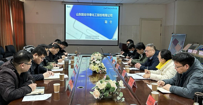 2月3日,山东阳谷华泰化工股份有限公司(以下简称华泰股份)技术总监马德龙一行六人来我校进行科技合作对接交流,刘宗明校长会见了马德龙一行。学校党委常委、副校长黄加栋出席座谈会,科技处、化学化工学院、山东省氟化学化工材料重点实验室相关负责人及专家教授参加了座谈会。座谈会由科技处处长颜梅主持。