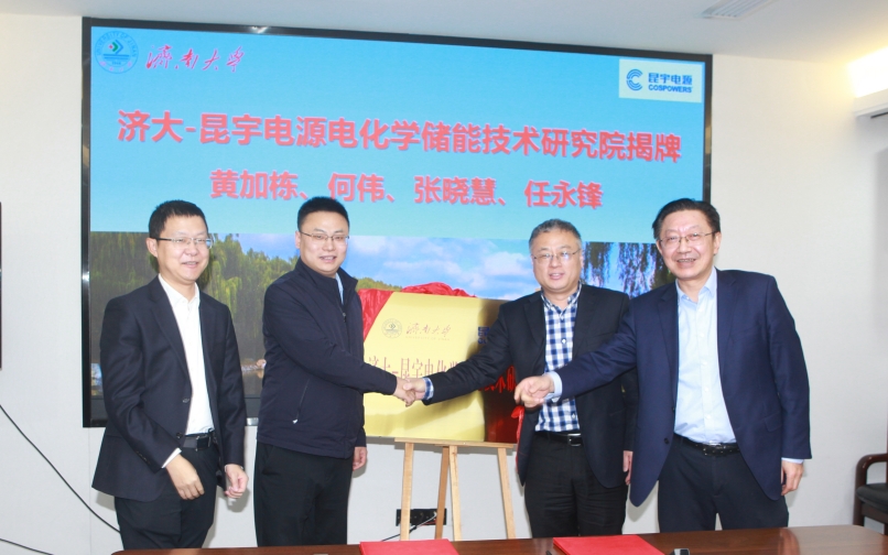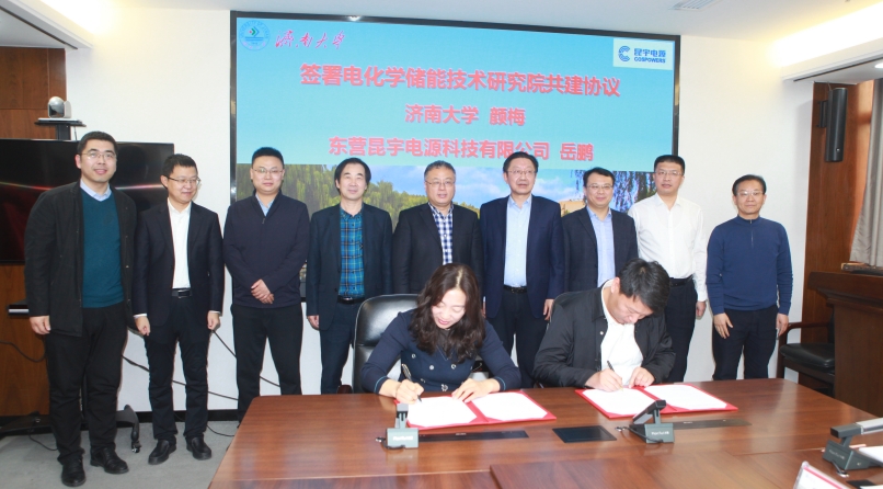 签约揭牌仪式上,颜梅与东营昆宇电源科技有限公司总经理助理岳鹏签署了sunbet申搏-昆宇电源电化学储能技术研究院共建协议,黄加栋、何伟、张晓慧、任永锋共同为研究院揭牌。