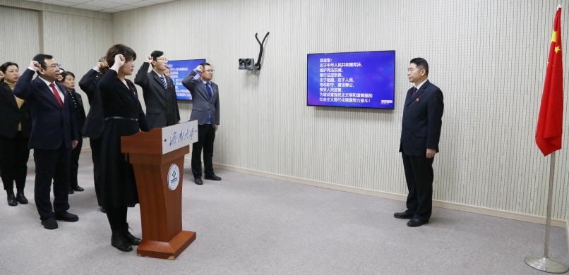 2月18日,学校举行监察官宪法宣誓仪式,校党委常委、纪委书记、省监委驻校监察专员、二级高级监察官续铁主持宣誓仪式并监誓,校纪委副书记、三级高级监察官孙菲菲领誓。