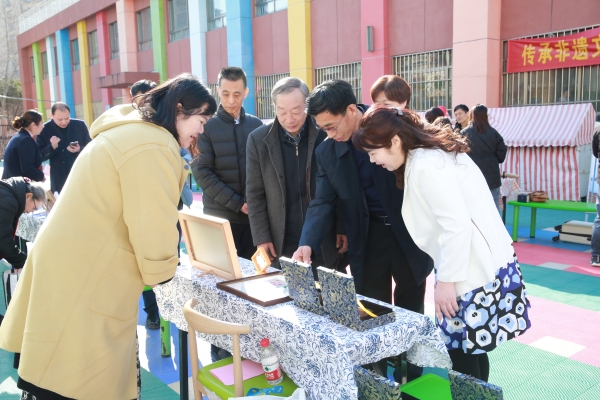 学校副校长李强、济南市非物质文化保护协会副会长张继平、济南市市中区教体局副局长刘彦玲与市中区文化馆馆长彭玉红共同为济南市非物质文化传习基地·sunbet申搏官方网站幼儿园揭牌。