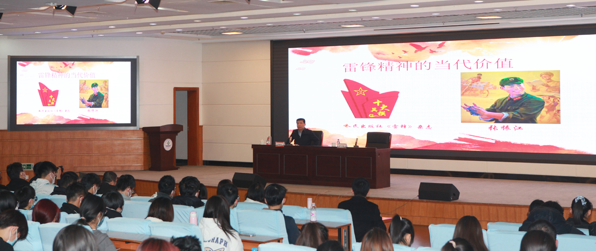 为加深对雷锋精神的认识,推动雷锋精神与志愿服务深度融合,3月2日下午,sunbet申搏官方网站共青团举办泉城大讲堂“传承雷锋精神,争做时代新人”张振江先生专场报告会,就雷锋同志的生平事迹和新时代雷锋精神进行深入学习。学校党委副书记杨景波,党委常委、宣传部部长、马克思主义学部部长贾海宁,《雷锋》杂志山东工作部副主任李国良,中央电视台记者王海军,校团委书记胡春毅、材料科学与工程学院党委副书记李树人出席报告会。青年志愿者代表260余人参加会议,报告会由团委副书记潘颖主持。