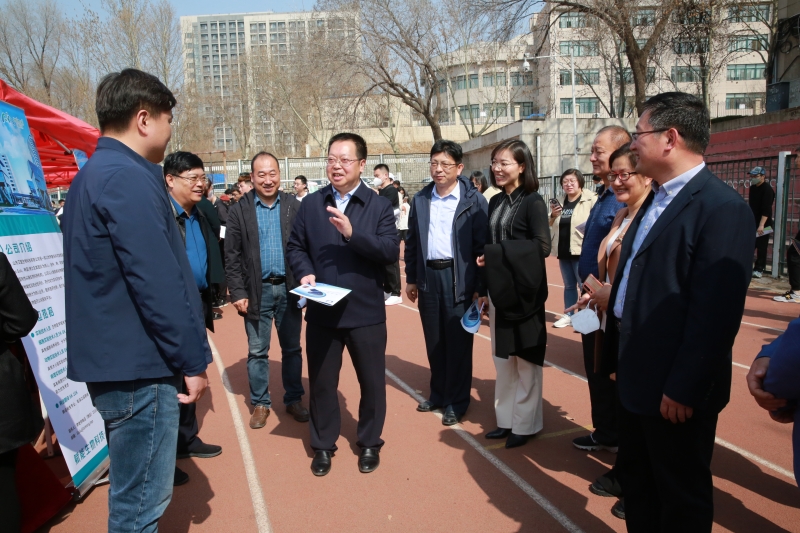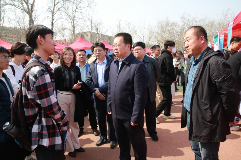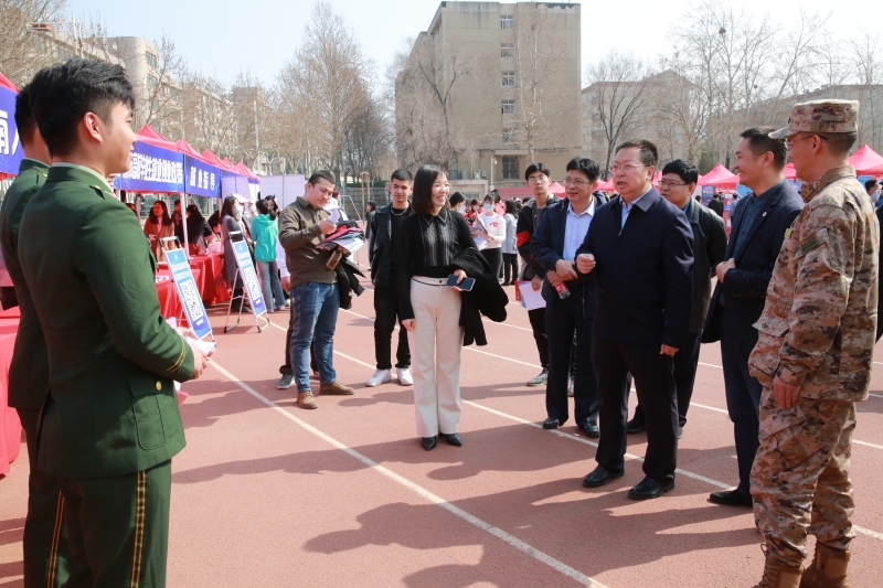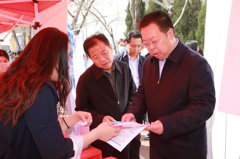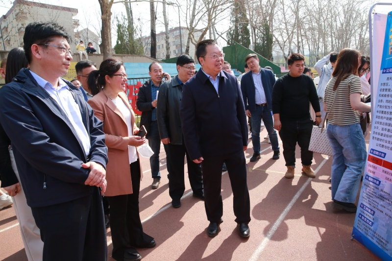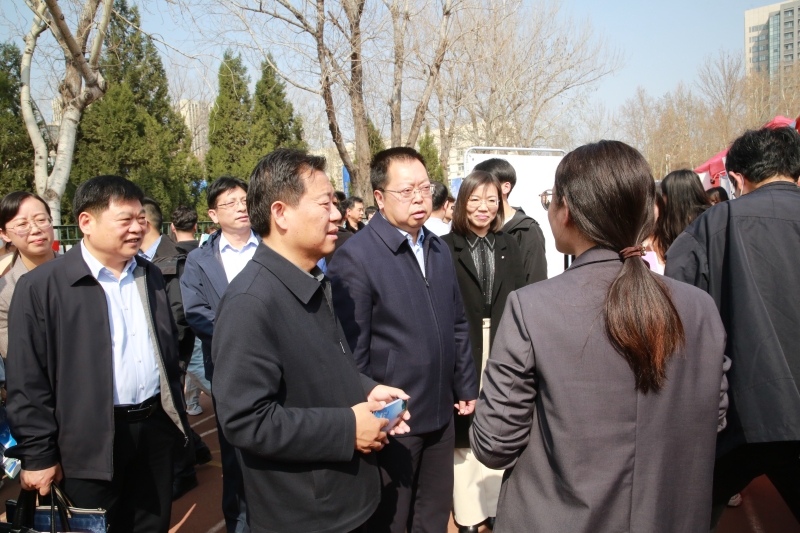 济南市委组织部副部长、市人力资源和社会保障局局长宁延学,市人力资源和社会保障局党组成员、市公共就业服务中心主任王振群,市中区副区长张源,sunbet申搏官方网站校长刘宗明、党委副书记杨景波等来到招聘会现场,在展位前与用人单位、求职学生进行交流。