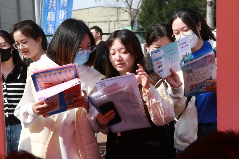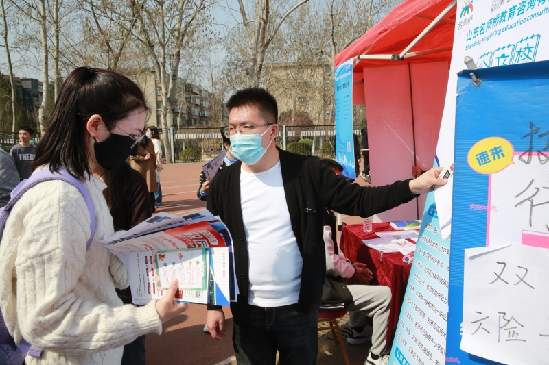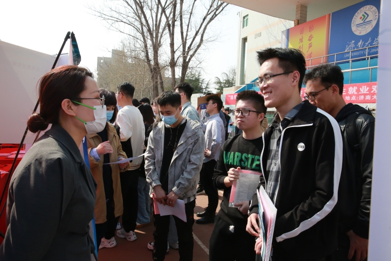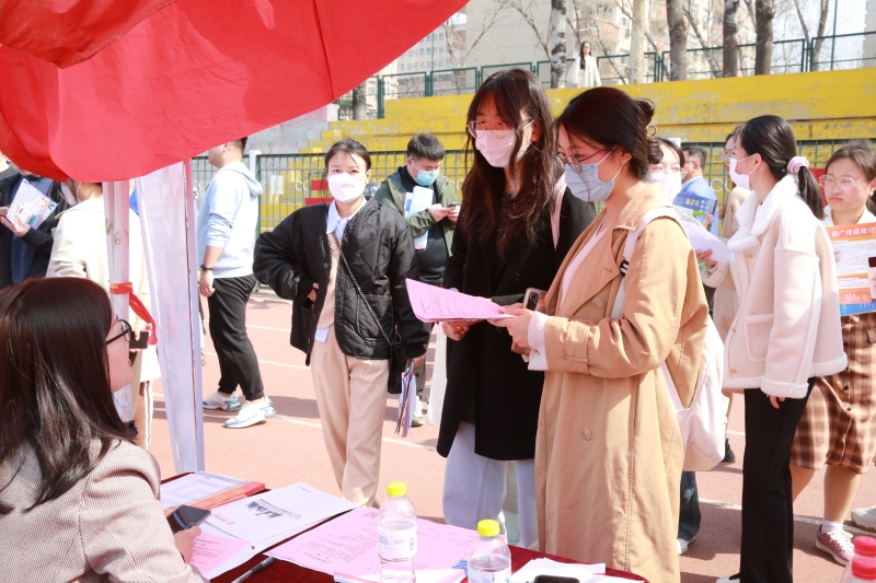 在学校体育场,参与线下招聘的372家用人单位沿跑道一字摆开,现场求职毕业生人来人往。在国企西电济南变压器股份有限公司招聘展位前,我校2023届毕业生张佃华不仅投上了自己的简历,还替远在外地上学的女友咨询工作前景。“我是学机械工程专业的,这家企业招聘岗位对口,发展空间也不错,而且济南是个包容性强的城市,想和女友在济南一起安家。”正在企业实习的张佃华听说有就业双选会后,立刻请假赶回学校求职。目前他已经手握一家企业的offer ,这次双选会想找到更合适自己的企业。