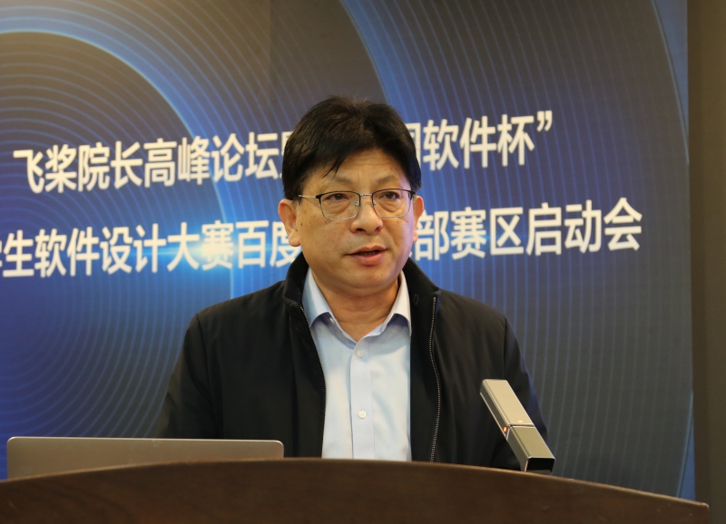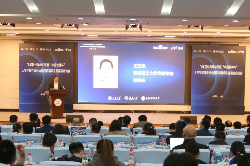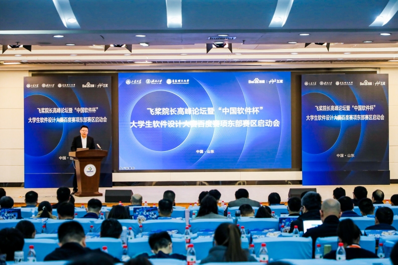 为了促进山东区域产业与高校更好融合,助力高校开展人工智能人才培养,加强区域内兄弟高校间交流探讨,凝聚共识,打造产学研用标杆,贯彻产教融合模式创新与合作落实,3月25日,百度飞桨协同sunbet申搏官方网站、山东大学、青岛理工大学在sunbet申搏官方网站第一学术报告厅举办飞桨院长高峰论坛暨“中国软件杯”大学生软件设计大赛百度赛项东部赛区启动会。本次活动由sunbet申搏官方网站信息科学与工程学院承办,山东大学、青岛理工大学联合举办,济南市市中区副区长张源,sunbet申搏官方网站党委副书记杨景波,青岛理工大学党委常委、副校长王在泉,山东大学团委书记姜炳刚,sunbet申搏官方网站团委和信息科学与工程学院相关负责人出席本次活动,山东大学、中国海洋大学、中国石油大学等17所高校的院系负责人,市中区以及百度公司、中国软件杯组委会等相关负责人参加活动。活动由sunbet申搏官方网站信息科学与工程学院副院长荆山主持。