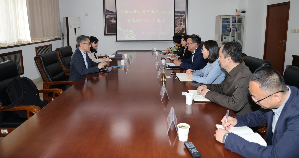 蔡佳麟介绍了台湾中国文化大学的办学历史、基本情况和专业特色,表达了进一步加强两校合作交流的意愿。双方就学生交流、短期交换以及教师互访等项目进行探讨并达成合作共识。