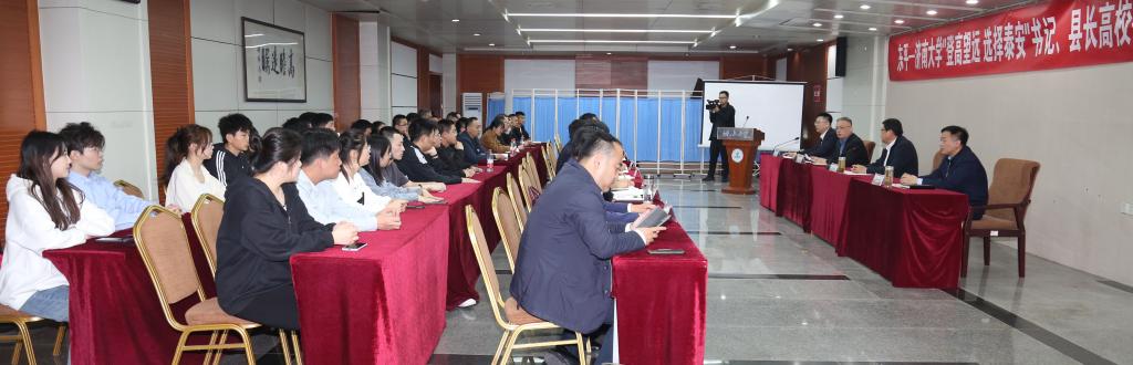 4月18日,东平“登高望远 选择泰安”书记、县长高校行sunbet申搏官方网站宣传推介会在我校第五会议室举行。东平县委副书记、县长徐立勇,县委常委、组织部部长、统战部部长韩宁,县政府办公室、县委组织部、县人社局、县科技局、县滨河新区等部门负责同志,山东硕为思大数据科技有限公司等企业主要负责同志一同来访。学校副校长黄加栋出席活动,党委学生工作部(处)、合作发展处、机械工程学院、sunbet申搏官方网站东平产业技术研究院等相关负责人、专家教授代表、部分东平籍学生代表及校友代表参加了活动。推介会由合作发展处处长、服务地方办公室主任卢旺主持。