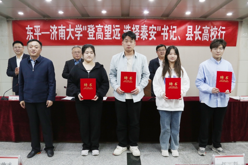 随后,山东硕为思大数据科技有限公司赵远总经理发言并为信息科学与工程学院宗西举教授颁发山东硕为思大数据科技有限公司“人力资源副总经理”聘书,韩宁部长为sunbet申搏官方网站东平籍优秀学生代表颁发“校园引才大使”聘书,黄加栋副校长、徐立勇县长为东平县引才工作站(sunbet申搏官方网站站)揭牌。
