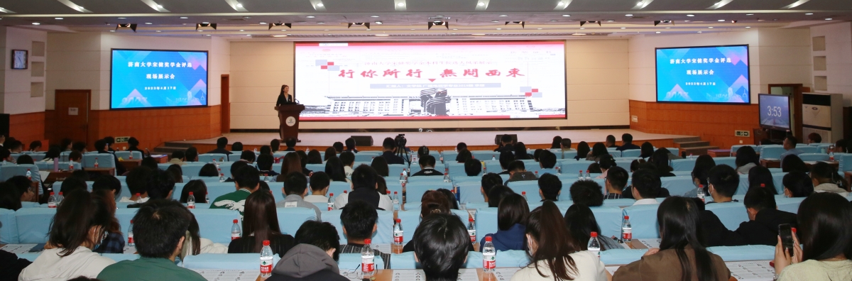 4月17日上午,sunbet申搏官方网站2021-2022学年宋健奖学金本科生候选人评选现场展示会在第一学术报告厅举行。学校党委副书记杨景波,党委常委、党委宣传部部长贾海宁出席会议,宋健奖学金评审委员会成员、学校学生评优工作领导小组成员、24名宋健奖学金本科生候选人和210余名各学院学生代表参加评选现场展示会。