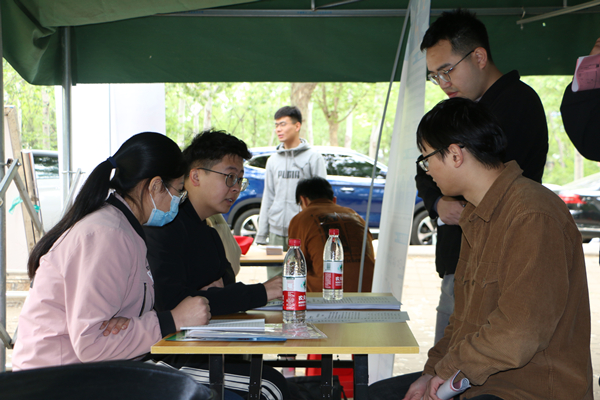 此次招聘会邀请到润丰股份、济宁碳素、海能未来、鲁南制药等80家优质企业,可投递职位308个,岗位需求人数达1864人,吸引学院各层次、各年级同学前来问询岗位信息,投递应聘、实习简历。毕业生们精心准备,手持简历,穿梭在各个招聘展位前,了解企业的招聘程序、工作内容、发展前景、薪资待遇、职位晋升等详细内容,用人单位人员热情回应,现场人头攒动,气氛热烈。杨景波与参会单位和学生亲切交流,了解用人单位的招聘需求及对我校就业工作的意见建议,询问关心毕业求职学生的就业意向与求职进展。多位招聘负责人表示,近年来学院毕业生质量持续向好,专业基础扎实,实操能力强,希望能与学校、学院保持长期联系。在招聘会现场,学院还重点针对西部计划、武装征兵等专设展位进行宣传讲解,拓宽学生就业择业渠道。