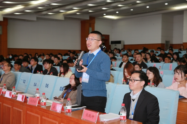 开幕式后,大会报告由我校材料科学与工程学院常务副院长赵德刚主持,国家杰出青年科学基金获得者东华大学江莞教授、国家杰出青年科学基金获得者山东大学贾春江教授分别作了主题演讲;同时,本次论坛设有绿色建筑材料、能源与环境材料、先进复合材料、催化功能材料、绿色化工及精准检测等5个分会场,分会场分别由哈尔滨工业大学徐慧宁教授、青岛大学毕赛教授等14名国家级青年人才做引领报告,通过精心遴选的104名研究生登台汇报展示科研成果,论坛优秀青年才俊汇集,会场气氛紧张热烈,研究生们收获满满。