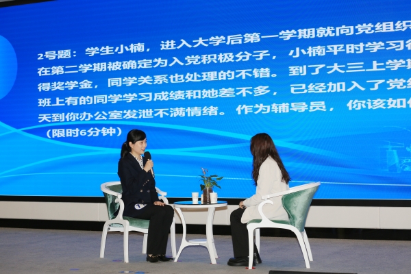 决赛分为谈心谈话和理论宣讲两个环节,采用随机抽题、现场演绎、当场出分的方式进行。谈心谈话环节,参赛选手在助演的配合下,用扎实的理论基础、专业的沟通技能、灵活的应变能力、真挚的情感表达与学生和家长耐心倾听、细心疏导、真心服务,以情载理,理情交融,展现了辅导员的担当和情怀。理论宣讲环节,参赛选手以“点亮青春理想”“激昂奋斗旋律”“淬炼斗争精神”“澎湃创新动力”为题,围绕学习贯彻落实习近平新时代中国特色社会主义思想,立足时代发展新要求和学生成长新特点,讲述身边的故事,诠释初心使命,展现了辅导员的专业能力和水平。