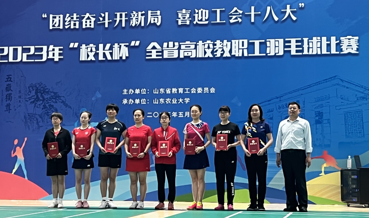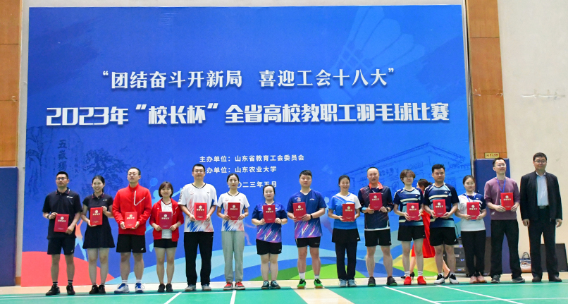 5月8日至12日,山东省教育工会主办的2023年“校长杯”全省高校教职工羽毛球比赛在山东农业大学体育馆举行,此次比赛共有来自全省教育系统75支代表队700多人参赛。我校党委副书记查玉喜,副校长王霞代表学校组队参加比赛。