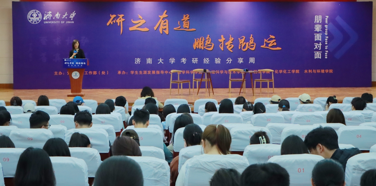 为进一步发挥朋辈榜样的示范引领作用,培养优良学风,激发学习内动力,增进同学们对考研知识和经验的了解,5月10日至12日,“研之有道,鹏抟鹍运”——“朋辈面对面”考研经验分享周在第二学术报告厅举行,本次活动由党委学生工作部(处)主办,学生生涯发展指导中心、数学科学学院、外国语学院、物理科学与技术学院、化学化工学院、水利与环境学院等承办。本次考研经验分享周共9场报告,学校9位生涯规划师、39位优秀考研学生代表作为活动嘉宾为同学们作考研规划指导与经验分享,3200余名学生参加活动。
