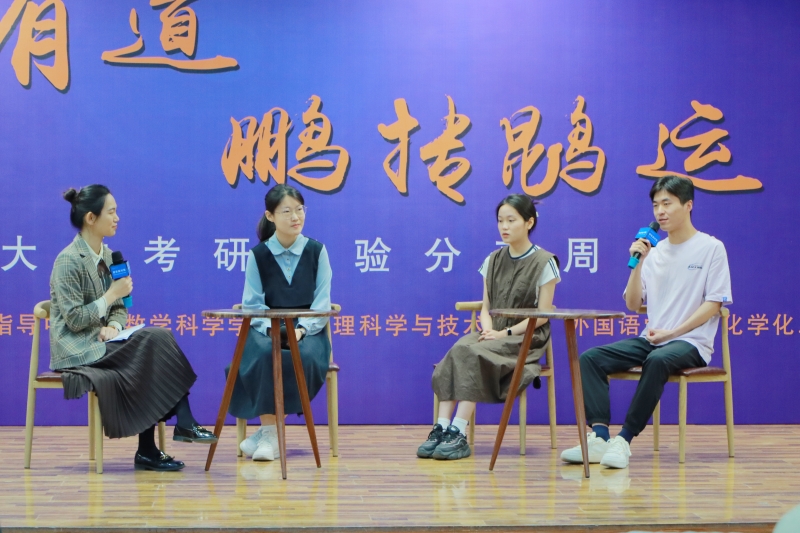 主题演讲环节,嘉宾们由己及人、娓娓道来,通过细致深入的分享激发了现场学生的学习意识,鼓舞了学生的学习热情和备考信心。人物访谈环节,同学们互动热情高涨,就大学学业规划、科研项目积累、考研的前期准备、考研目标的最晚确定时间、考研英语的学习、考研面试中的注意事项以及考研和学生工作的时间平衡等问题向老师和学生嘉宾进行现场提问,嘉宾针对同学们的困惑做了耐心详细的解答,并鼓励同学们要理性对待考研,提前做好生涯规划,多开阔眼界、升级思维、提升自己,实现自己的梦想。九场考研经验分享会分群体分类别,聚焦学生学业规划、升学需求,面对面贴近学生,以较强的现场感、互动性和个性化得到了老师们和同学们的一致认可。