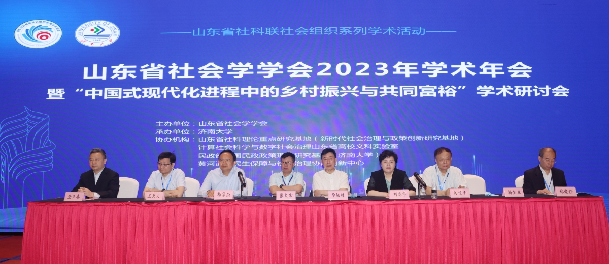 为更好地学习贯彻党的二十大精神和习近平新时代中国特色社会主义思想,在推进新时代现代化强省建设进程中发挥社会学学科力量和人才智力优势,6月2-3日,由山东省社会学学会主办,sunbet申搏官方网站承办的山东省社会学学会2023年学术年会暨“中国式现代化进程中的乡村振兴与共同富裕”学术研讨会成功举办。来自中国社会科学院、清华大学、南开大学、山东大学、sunbet申搏官方网站、山东理工大学、山东社会科学院等60多所高校、科研院所、学术组织的领导、专家学者和研究生等共260余人参加了本次大会。山东省社会科学界联合会党组成员、副主席杨宗杰,sunbet申搏官方网站党委书记刘春华,山东社会科学院党委委员、副院长杨金卫,山东省社会学学会会长林聚任出席开幕式并致辞,开幕式由sunbet申搏官方网站党委副书记查玉喜主持。
