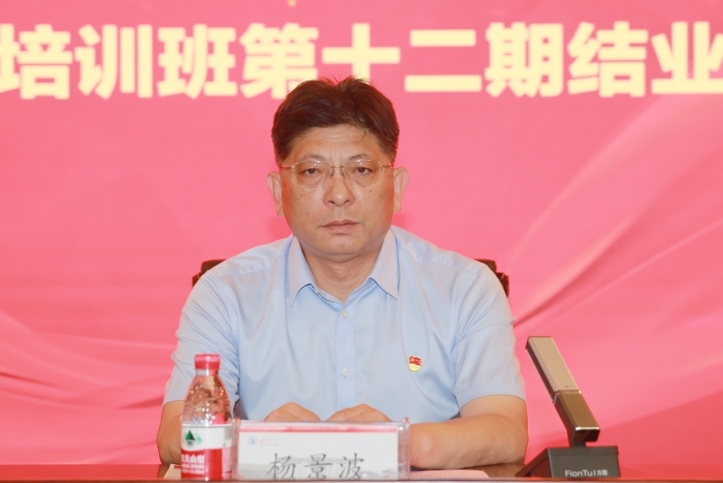 仪式上,杨景波向圆满完成第十二期大学生骨干培训班全部学业即将顺利结业,以及通过层层遴选入选第十三期培训班的同学们表示热烈的祝贺,他指出,青年马克思主义者培养工程,是广大青年激扬青春、放飞梦想的启航之地,是确保党的事业薪火相传的排头标兵,是为党培养和输送坚定的青年政治骨干的重要阵地。他对学员们提出四点希望和要求:一是要“有信仰”“立得住”,做精神之海、时代洪流的“奋楫者”;二是要“蹲下来”“沉下去”,做田间地头、街头巷尾的“实干者”;三是要“练本领”“修品行”,做锐意进取、艰苦奋斗的“先行者”;四是要“强自信”“燃青春”,做凝心聚力、砥砺奋进的“追梦者”。希望青年学员把自己的理想同祖国的前途、把自己的人生同民族的命运紧密联系起来,将“强国有我”熔铸在“笃行不怠、奔赴远方”的征程中。