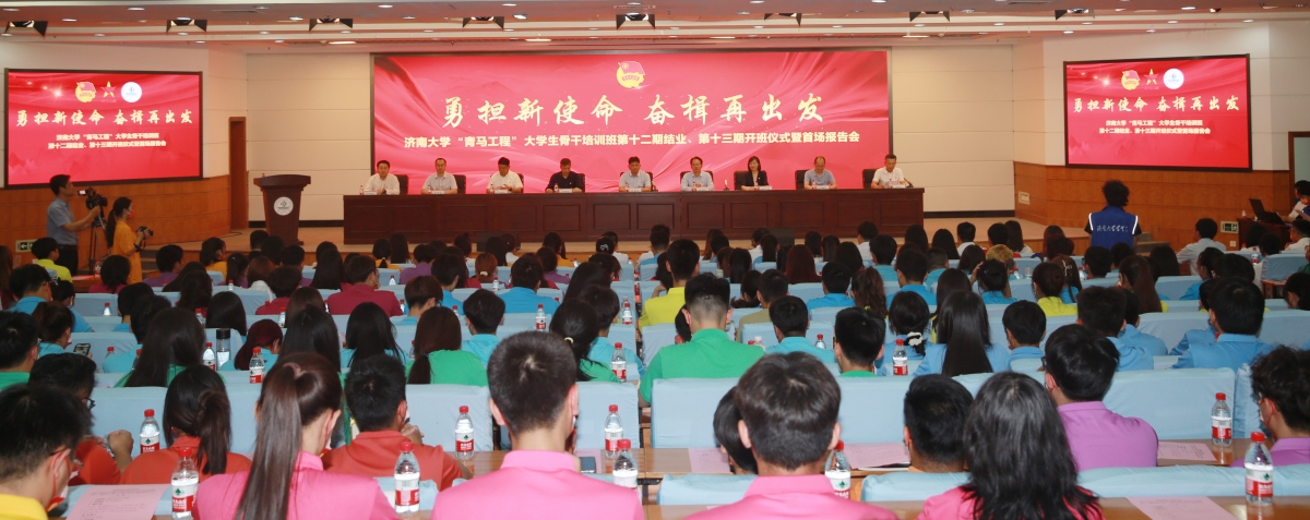 6月6日下午,sunbet申搏官方网站“青马工程”大学生骨干培训班第十二期结业、第十三期开班仪式暨首场报告会在第一学术报告厅举行。学校党委副书记杨景波,党委常委、宣传部部长贾海宁,党委组织部、党委学生工作部(处)、党委保卫部 安全管理处、教务处、党委研究生工作部 研究生院、团委相关负责人,全体专职团干部,sunbet申搏官方网站习近平新时代中国特色社会主义思想青年研习社成员,sunbet申搏官方网站“青马工程”第十二期、十三期大学生骨干培训班学员参加仪式,山东思想政治课教学名师、sunbet申搏官方网站“教书育人楷模”、马克思主义学院李朋忠教授作专题报告,仪式由校团委书记胡春毅主持。